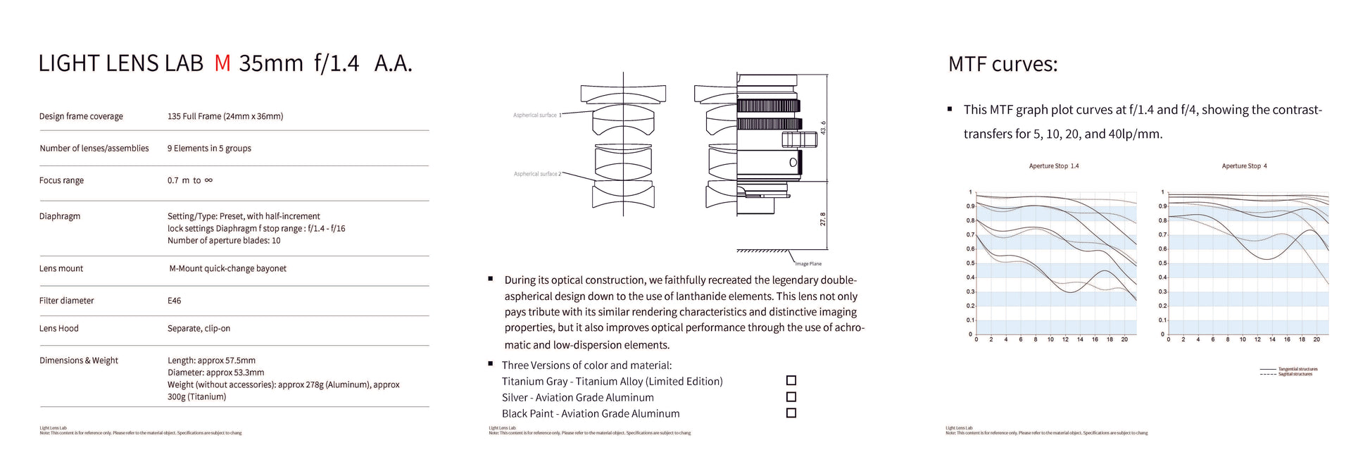 - Homage to one of the most distinguished and sought-after lenses in photographic history. This lens pays faithful homage to the groundbreaking double-aspherical optical concept, while offering advancements in rendering performance, distortion control, and chromatic aberration suppression.